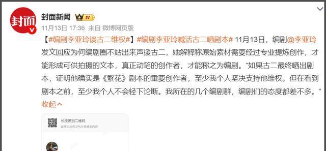 现在编剧李亚玲似乎是有些坐不住了,出来解释自己不声援古二的原因,她觉得,古二既然拿不出剧本,就根本没办法证明他说的是真的。