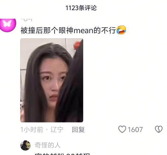 一个女生匆忙走路时不慎撞到了她,在被撞到的那个瞬间,她就失去了表情管理,疑似还白了那个女生一眼。